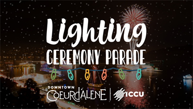 The Coeur d’Alene Downtown Association is pleased to announce the 33rd Annual Lighting Ceremony Parade, presented by ICCU, on November 28, 2025. Watch as the parade entries light up Sherman Avenue as they bring the Holiday Spirit to Downtown CDA with marching bands, dancing, music, and festive floats!